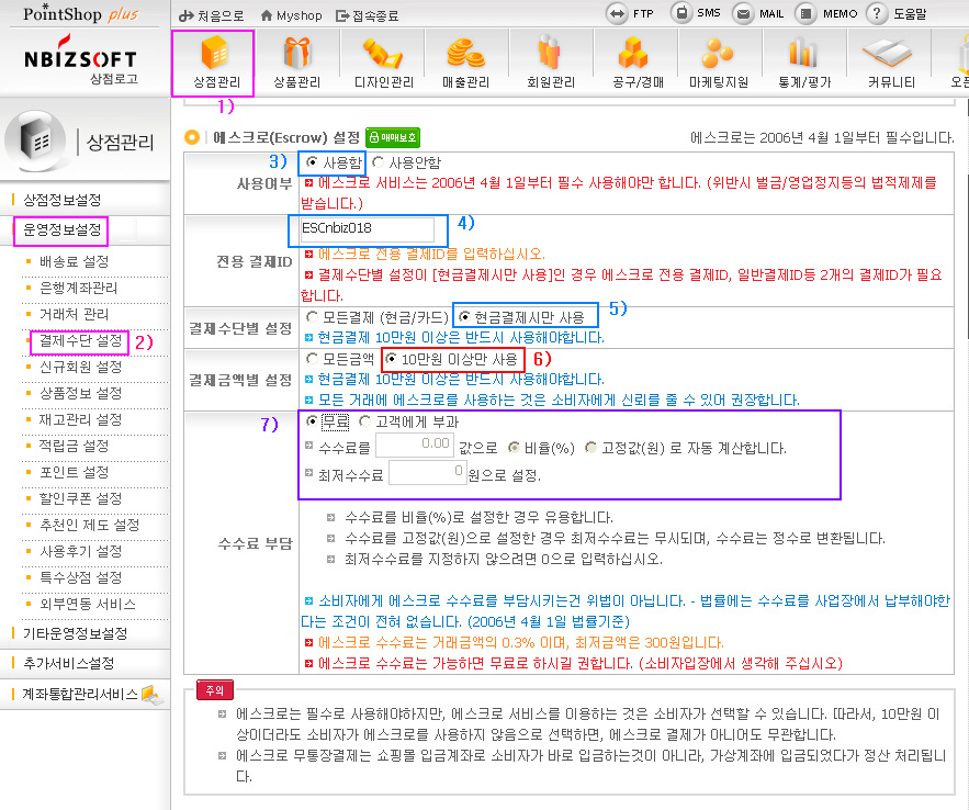 1)~2) ¿¡½ºÅ©·Î ¼³Á¤Àº »óÁ¡°ü¸® ¡· ¿î¿µÁ¤º¸¼³Á¤ ¡· °áÁ¦¼ö´Ü¼³Á¤ ¿¡¼ ÇÏ½Ç ¼ö ÀÖ½À´Ï´Ù.