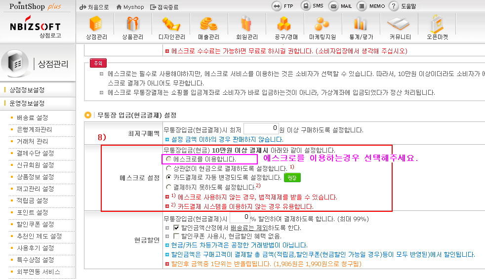 8) ¹«ÅëÀå ÀÔ±Ý(Çö±Ý°áÁ¦)¼³Á¤¿¡¼ ¿¡½ºÅ©·Î ¼³Á¤À» ¼±ÅÃÇØÁÖ¼¼¿ä.