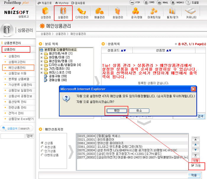 »óǰ ¼ø¼ ¼³Á¤ ¸®½ºÆ®ÀÇ ÇÏ´ÜÀÇ "ÀÚµ¿" ¿É¼ÇÀ» ¼±ÅÃÇϽøé