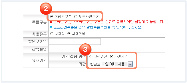 1) °ü¸®ÀÚ>»óÁ¡°ü¸®>¿î¿µÁ¤º¸ ¼³Á¤>ÇÒÀÎÄíÆù ¼³Á¤¿¡¼ ¿øÇϽô »ç¿ëÁ¶°ÇÀ¸·Î Àû¿ëÇØÁÖ¼¼¿ä.