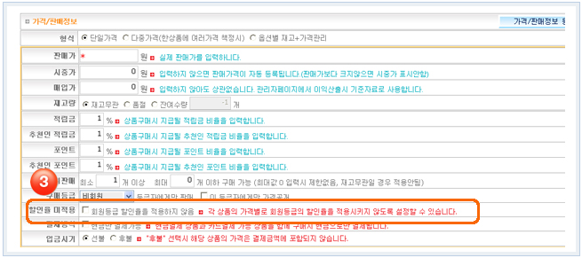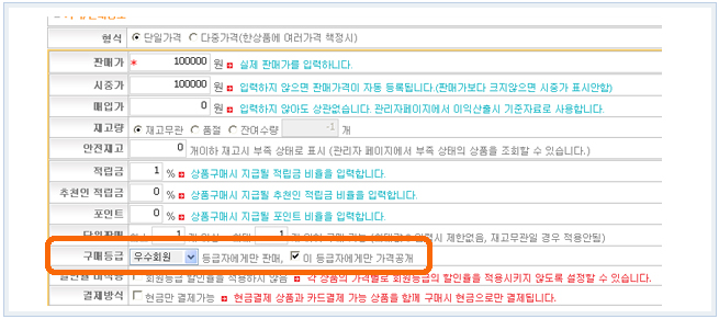 ±âÁ¸¿¡´Â ȸ¿ø µî±Þº° ÇÒÀÎÀ²À» ¼³Á¤ Çϼ̾ ¾Æ·¡¿Í °°ÀÌ »óǰ µî·ÏºÎºÐ¿¡ ƯÁ¤ ȸ¿ø¿¡°Ô¸¸ ¼³Á¤ÇÏ¿´À» °æ¿ì