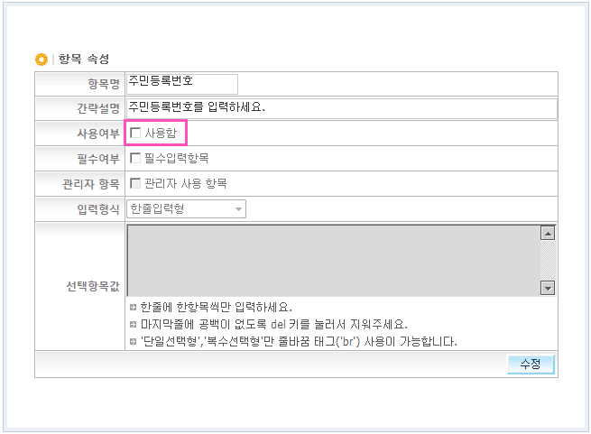 °ü¸®ÀÚ°¡ Áֹεî·Ï¹øÈ£ÀÔ·Â ¿©ºÎ¸¦ ¼±ÅÃÇÏ¿© ȸ¿ø°¡ÀÔÀ» ¹ÞÀ» ¼ö ÀÖ´Â ±â´ÉÀ¸·Î ¾÷±×·¹ÀÌµå µÇ¾ú½À´Ï´Ù.