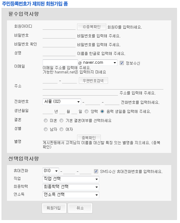 ȸ¿ø°¡ÀԽÿ¡ Áֹεî·Ï¹øÈ£¸¦ ÇʼöÀûÀ¸·Î ÀÔ·ÂÇØ¾ß¸¸ °¡ÀԵǾú´ø ±âÁ¸ ¹æ½Ä¿¡¼