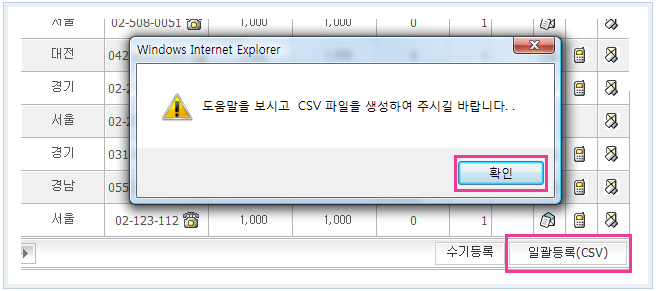 ÀúÀåÀÌ ¿Ï·á°¡ µÇ½Å ÈÄ °ü¸®ÀÚ ¡·È¸¿ø°ü¸® ¸ñ·Ï ¿ìÃø ÇÏ´Ü¿¡ [Àϰýµî·Ï(CSV)] ¹öưÀ» Ŭ¸¯ÇÏ½Ã¸é ¾Æ·¡°ú °°Àº âÀÌ ³ªÅ¸³³´Ï´Ù.