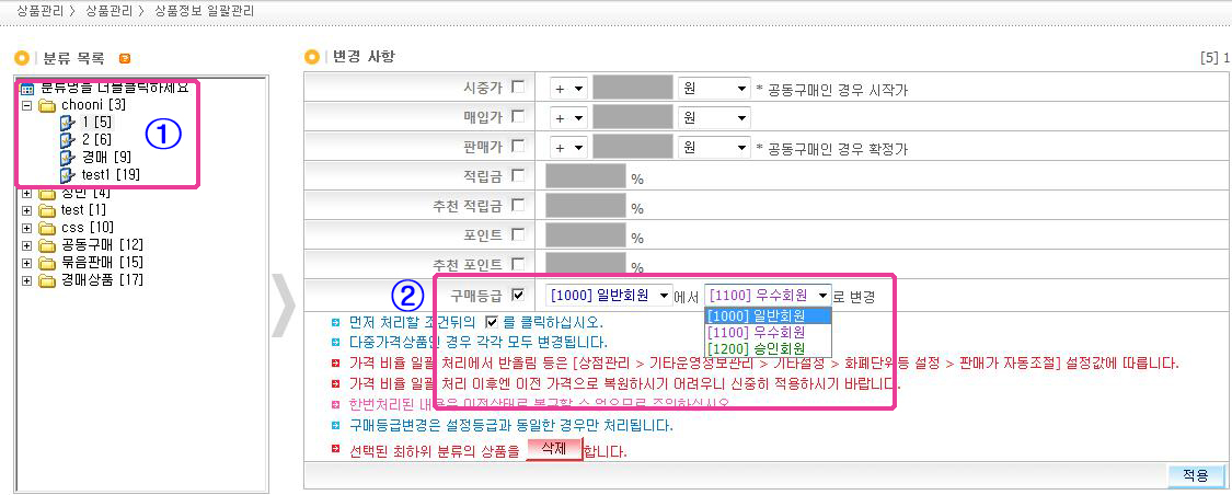 3. ¿ìÃø º¯°æ»çÇ× ¡· ±¸¸Åµî±Þ¿¡ üũ ÈÄ º¯°æÀü ±¸¸Åµî±Þ°ú º¯°æÇÒ ±¸¸Åµî±ÞÀ» ¼±Åà ÈÄ Àû¿ëÇÏ¿© ÁÝ´Ï´Ù.