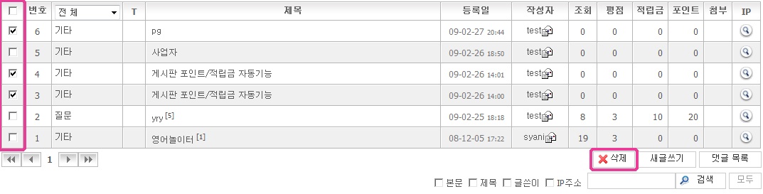 »èÁ¦¸¦ ¿øÇÏ´Â ±ÛÀº üũ¹Ú½º¿¡¼ ÇѲ¨¹ø¿¡ ¼±Åà ÈÄ ¿ìÃøÇÏ´Ü [»èÁ¦] ¹öưÀ» Ŭ¸¯ÇϽøé Àϰý»èÁ¦°¡ °¡´ÉÇÕ´Ï´Ù.