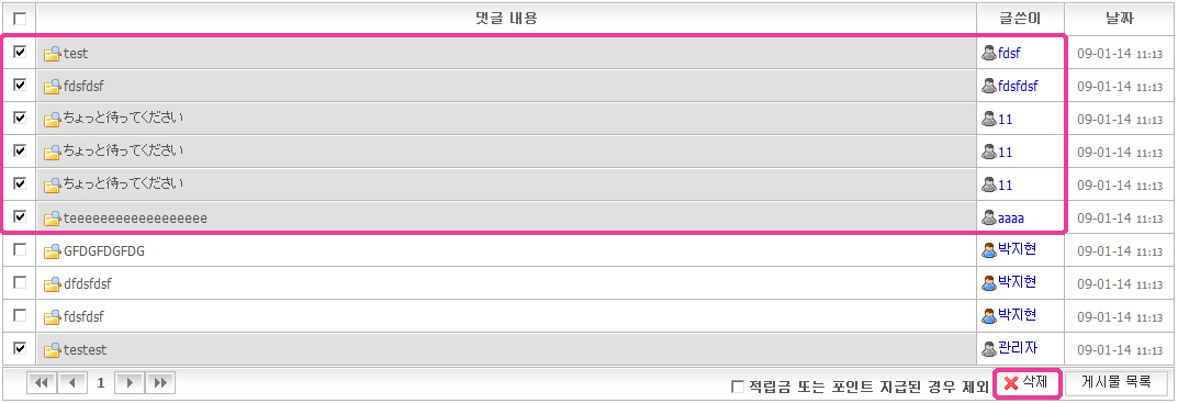 »èÁ¦¸¦ ¿øÇÏ´Â ´ñ±ÛÀº üũ¹Ú½º¿¡¼ ÇѲ¨¹ø¿¡ ¼±Åà ÈÄ ¿ìÃøÇÏ´Ü [»èÁ¦] ¹öưÀ» Ŭ¸¯ÇϽøé Àϰý»èÁ¦°¡ °¡´ÉÇÕ´Ï´Ù.