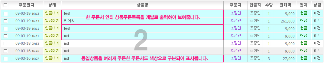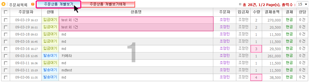 MDº°·Î »óǰÆÇ¸Å¸¦ Çϴ°æ¿ì ÁÖ¹®¸ñ·Ï¿¡ "¸ÅÀÔó"°¡ ÇÔ²² Ãâ·ÂµË´Ï´Ù.
