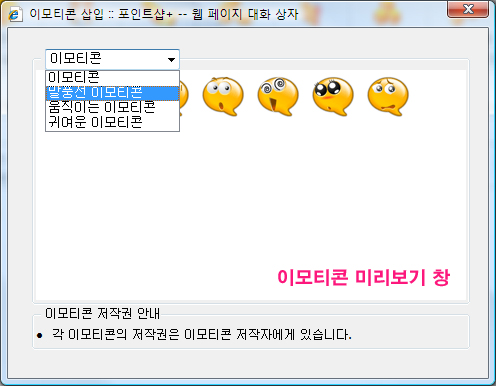[À̸ðƼÄÜ ¹Ì¸®º¸±â] ¹öưÀ» ´©¸£½Ã¸é ±âº»Á¦°øµÇ´Â À̸ðƼÄÜÀÇ À̹ÌÁöµéÀ» ¹Ì¸®º¸°í ¼±ÅÃÇÒ ¼ö ÀÖ½À´Ï´Ù.