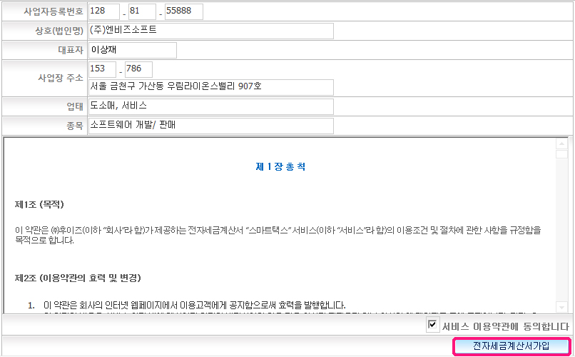 1. ¼ºñ½º ½ÅûÀ» Ŭ¸¯ ÈÄ ¾Æ·¡ ±×¸²°ú °°ÀÌ ¿ìÃøÇÏ´Ü ¼ºñ½º ÀÌ¿ë¾à°ü¿¡ µ¿ÀÇÇϽŠµÚ [ÀüÀÚ¼¼±Ý°è»ê¼°¡ÀÔ] ¹öưÀ» ´©¸£½Ã¸é ½ÅûÁ¢¼ö°¡ ¿Ï·áµË´Ï´Ù.