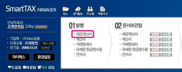 Áï½Ã¹ß±ÞµÈ ¼¼±Ý°è»ê¼ ³»¿ªÀº °ü¸®ÀÚ ¡·»óÁ¡°ü¸® ¡·ÀüÀÚ¼¼±Ý°è»ê¼ ¡·½º¸¶Æ®ÅýºÁ¢¼Ó ¡·02 ¹®¼º¸°üÇÔ¿¡ ¼¼±Ý°è»ê¼ [¹ßÇàÇÔ] À» Ŭ¸¯ÇϽøé È®ÀÎÀÌ °¡´ÉÇÕ´Ï´Ù.