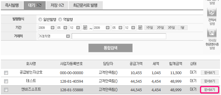 ¹ßÇà»óŰ¡ ´ë±âÁßÀÎ ¼¼±Ý°è»ê¼¿¡ [¹®¼º¸±â] ¸¦ Ŭ¸¯ÇÕ´Ï´Ù.
