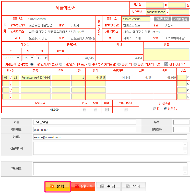 ÀüÀÚ¼¼±Ý°è»ê¼ ¼ºñ½º´Â ¹ßÇà°Ç¼ö¿¡ µû¶ó Á¦°øµÇ´Â À¯·á¼ºñ½ºÀÔ´Ï´Ù. (¿ù 50°Ç ÀÌÇÏ ¹ßÇàÀº ¹«·á)