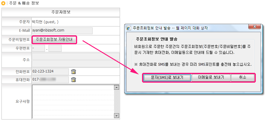 ºñȸ¿øÀÌ ±¸¸ÅÀÚ°¡ º»ÀÎÀÇ ÁÖ¹®¹øÈ£¿Í ºñ¹Ð¹øÈ£¸¦ ºÐ½ÇÇÏ¿´À»°æ¿ì¿¡ °ü¸®ÀÚ°¡ SMS(¹®Á¦¸Þ¼¼Áö) ¶Ç´Â À̸ÞÀÏ·Î Á¤º¸¸¦ ¹ß¼ÛÇÏ¿© ¾È³»¸¦ ÇÒ ¼ö ÀÖ½À´Ï´Ù.