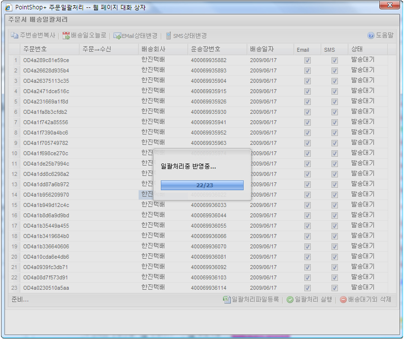 2. EMAIL»óꝰæ : ¹è¼Ûµî·ÏÀÌ ÁøÇàµÉ¶§ ¹è¼Û¾È³»¸¦ À̸ÞÀÏ·Î ÁÖ¹®ÀÚ¿¡°Ô ÇѲ¨¹ø¿¡ ÇÔ²² ¹ß¼ÛÇÒ¶§ ¹ß¼Û¿©ºÎ¸¦ Àϰý¼±ÅÃ,ÇØÁ¦ °¡´ÉÇÕ´Ï´Ù.
