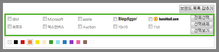 ¼Ò½º¿¡¼ ºê·£µå ¸ñ·Ï º¸±â °¨Ãß±â, Àüü¼±ÅÃ/ÇØÁ¦/¼±Åà º¸±âµîÀº button À» ÀÌ¿ëÇØ¼ ¸¸µé¾ú½À´Ï´Ù.