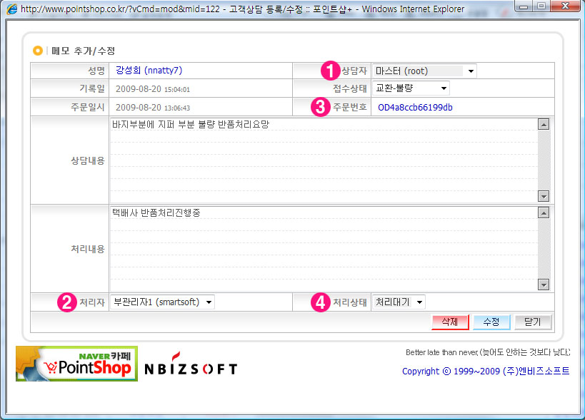 ÆíÁý : »ó´ã³»¿ë ¹× »ó´ãÀÚ, ó¸®ÀÚµîÀ» ¼öÁ¤ÇÒ ¼ö ÀÖ½À´Ï´Ù.