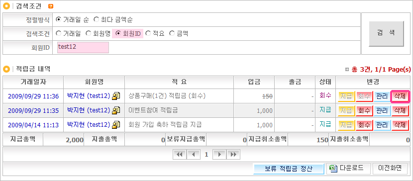 ±×·¯³ª °ü¸®ÀÚ°¡ ¿øÇÏÁö ¾ÊÀ»°æ¿ì Àû¸³±Ý,Æ÷ÀÎÆ®¿¡´ëÇÑ È¸¼ö,Áö±ÞµîÀÇ ±â·ÏÀÌ ³²Áö¾Êµµ·Ï »èÁ¦ÇÒ ¼ö ÀÖ´Â ±â´ÉÀ» ¾÷µ¥ÀÌÆ® ÇÏ¿´½À´Ï´Ù.