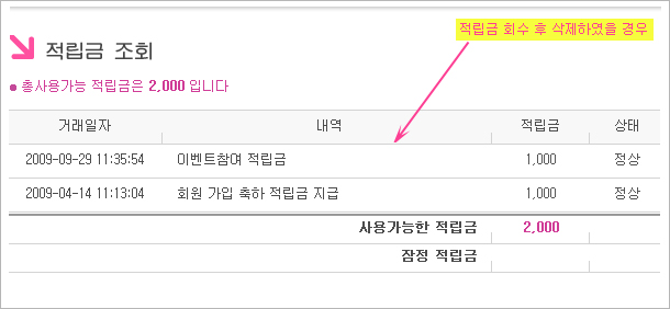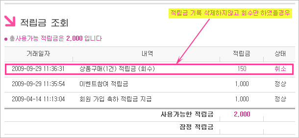 ȸ¿ø¿¡°Ô ½Ç¼ö·Î Àû¸³±Ý ¶Ç´Â Æ÷ÀÎÆ®°¡ Áö±ÞµÇ¾ú°Å³ª ±âÁ¸¿¡ Áö±ÞÇÑ Àû¸³±Ý,Æ÷ÀÎÆ®¸¦ ȸ¼öÇØ¾ß¸¸ ÇÒ °æ¿ì ȸ¼öµÈ ³»¿ëÀÌ ±×´ë·Î ȸ¿øÀÇ ¸¶ÀÌÆäÀÌÁö Àû¸³±ÝÁ¶È¸ ºÎºÐ¿¡ ±â·ÏÀÌ ³²¾Æ ½Ç¼ö·Î Áö±ÞµÈ °æ¿ì¿¡µµ ȸ¿ø¿¡°Ô ±×´ë·Î ³ëÃâÀ̵Ǿú½À´Ï´Ù.