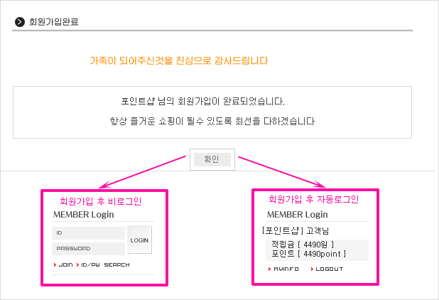 ȸ¿ø°¡ÀÔ ÈÄ ÀÚµ¿·Î±×ÀÎ ºÎºÐÀ» »óÁ¡¿¡ ¸Â°Ô ¼±ÅÃÇÏ¿© [Àû¿ë]ÇÕ´Ï´Ù.