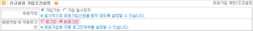 ȸ¿ø°¡ÀÔ¿Ï·á ÈÄ ÀÚµ¿·Î±×ÀÎÀÌ µÇ¾ú´ø ±â´ÉÀ» °ü¸®ÀÚÀÇ ¼³Á¤¿¡ µû¶ó ȸ¿ø°¡ÀÔ¿Ï·á ÈÄ ÀÚµ¿·Î±×ÀÎ ¶Ç´Â ºñ·Î±×ÀÎÀ» ¼±ÅÃÇÏ¿© ÀÌ¿ëÇÒ ¼ö ÀÖµµ·Ï ¾÷µ¥ÀÌÆ® µÇ¾ú½À´Ï´Ù.