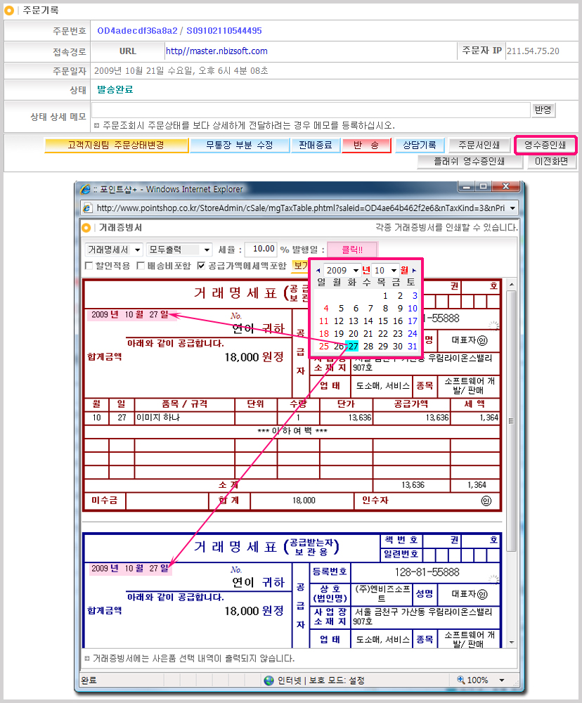 ÁÖ¹®»ó¼¼³»¿ª¿¡¼ [¿µ¼öÁõÀμâ] ¹öưÀ» Ŭ¸¯½Ã »õâÀÌ ¶ß¸é ¹ß±ÞÇÒ ¿µ¼öÁõÁ¾·ù¸¦ ¼±Åà ÈÄ ¿ìÃø ¹ßÇàÀÏ °ø¶õÀ» Ŭ¸¯ÇØ ¹ßÇàÇϰíÀÚ ÇÏ´Â ³¯Â¥¸¦ ¼±ÅÃÇÕ´Ï´Ù.