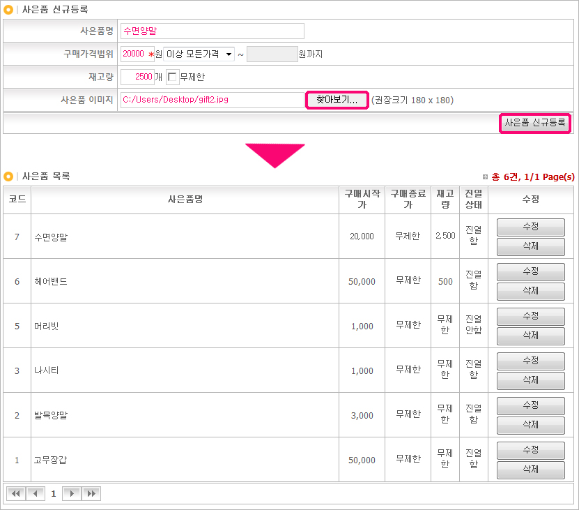 »çÀºÇ°ÀÇ Á¤º¸°¡ º¯µ¿µÇ¾úÀ» °æ¿ì [¼öÁ¤]¹öưÀ» Ŭ¸¯ÇÏ¿© »çÀºÇ°¿¡ ´ëÇÑ »óǰÁ¤º¸¸¦ ¼öÁ¤ÇÒ ¼ö ÀÖ½À´Ï´Ù.