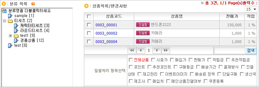 ÁÂÃø ºÐ·ù¸ñ·Ï¿¡¼ ÀϰýÀû¿ëÇÒ ÇÏÀ§ »óǰºÐ·ù¸¦ ¼±ÅÃÇϸé ÇØ´ç ºÐ·ù¿¡ ¿¬°áµÈ »óǰ¸ñ·ÏÀÌ ¿ìÃø »óǰ¸ñ·Ï/º¯°æ»çÇ׿¡ Ãâ·ÂµË´Ï´Ù.