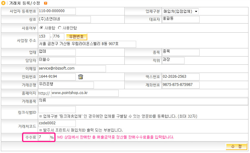 ¸ÕÀú °¢ MD°Å·¡Ã³ º°·Î ÆÇ¸Å¼ö¼ö·á¸¦ ¾Æ·¡¿Í °°ÀÌ ¼³Á¤ÇØÁÝ´Ï´Ù.