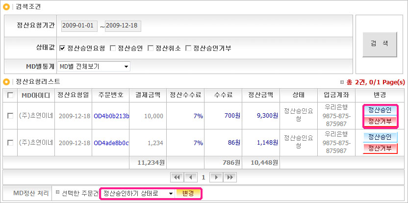 3. root°ü¸®ÀÚ´Â °ü¸®ÀÚ ¡·Åë°è/Æò°¡ ¡· MDÅë°è°ü¸® ¡· MDº° Á¤»ê¿äû¸®½ºÆ® ¸Þ´º·Î Á¢¼ÓÇÏ¿© °¢ MD »óÁ¡º°·Î Á¤»ê¿äûÇÑ ¸®½ºÆ®¸¦ È®ÀÎÇÒ ¼ö ÀÖÀ¸¸ç ÀÌ¿¡´ëÇØ ÆÇ¸Å¼ö¼ö·á·Î Á¤»êµÈ ±Ý¾×¿¡´ëÇÑ [Á¤»ê½ÂÀÎ]À» ÇÒ ¼ö ÀÖ½À´Ï´Ù.