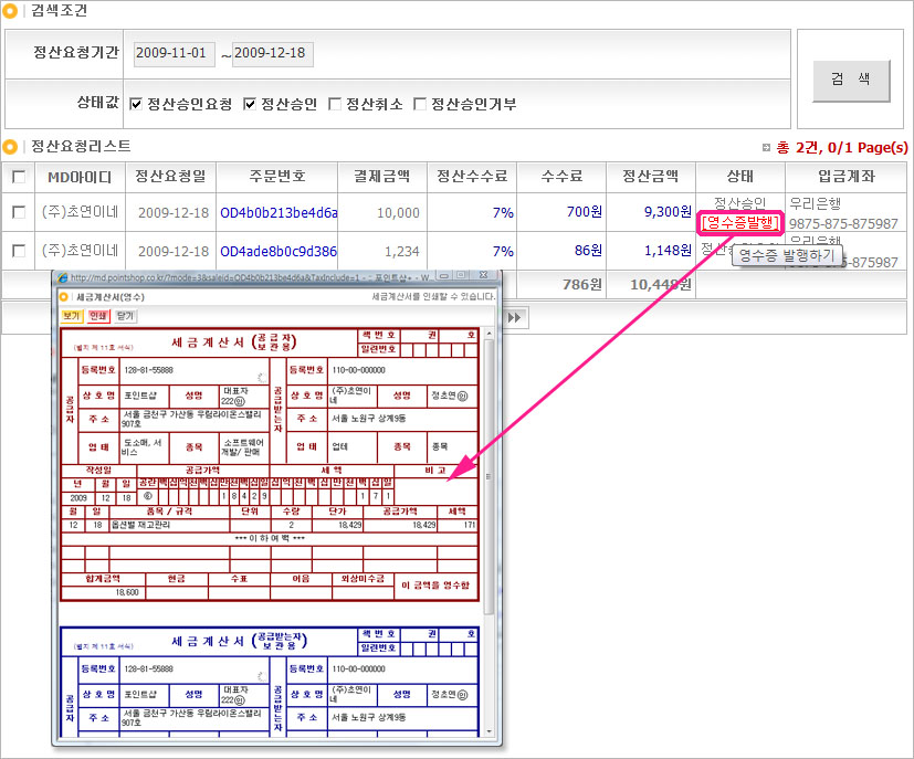 4. ÆÇ¸Å¼ö¼ö·á¿¡ ´ëÇÑ Á¤»ó½ÂÀÎÀÌ ¿Ï·áµÇ¸é MD »óÁ¡°ü¸®ÀÚ´Â MD°ü¸® ¡· MD Á¤»ê¸®½ºÆ® ¸Þ´º¿¡¼ ¼ö¼ö·á Á¤»êÀÌ ¿Ï·áµÈ ³»¿ëÀ» È®ÀÎÇÒ ¼ö ÀÖÀ¸¸ç Á¤»ê½ÂÀΰǿ¡´ëÇÑ [¿µ¼öÁõ ¹ßÇà]À» Ŭ¸¯ÇϽøé
